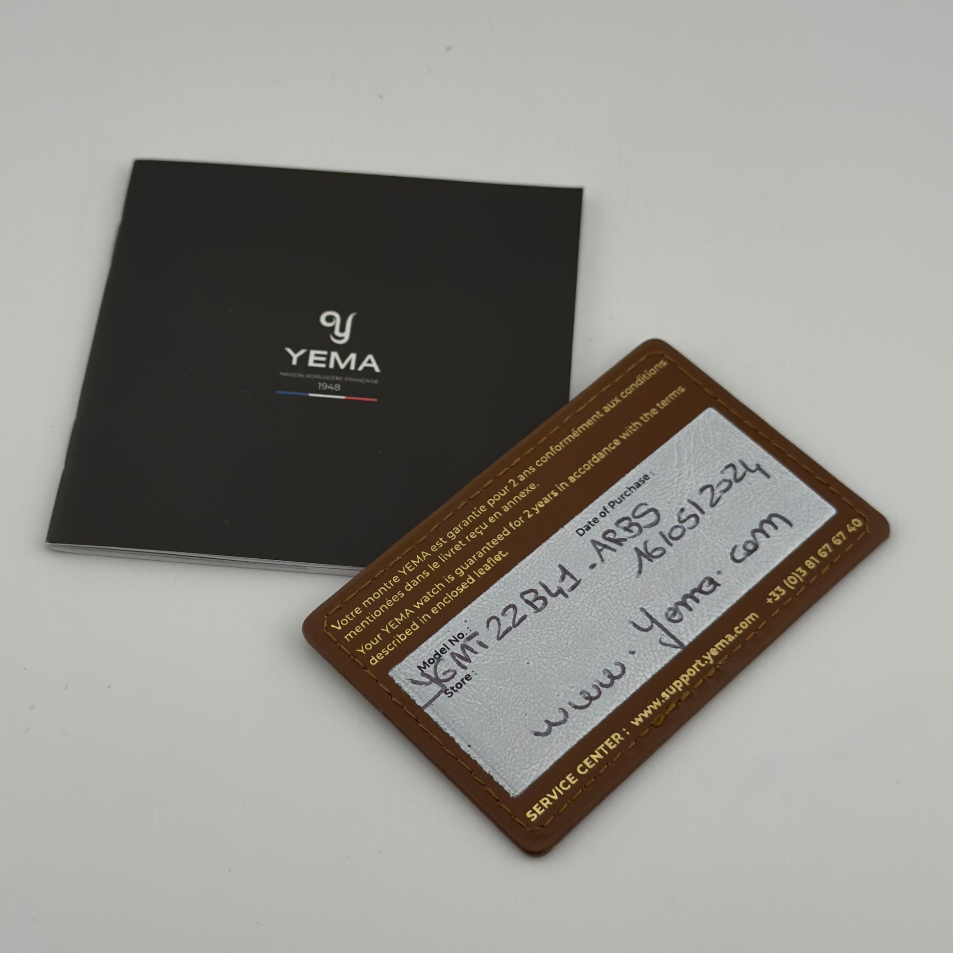 - Warranty card (dated May 2024, purchased via yema.com)