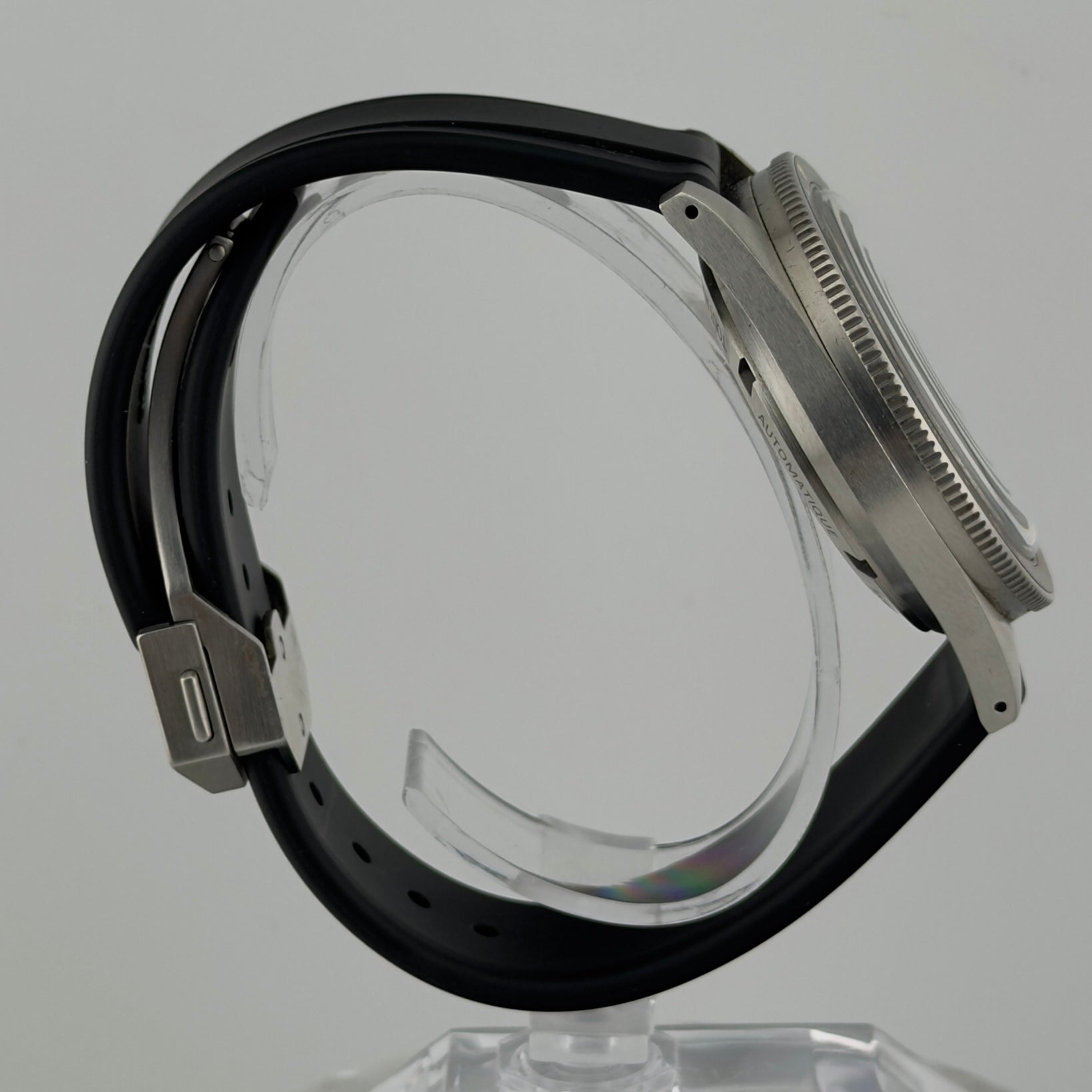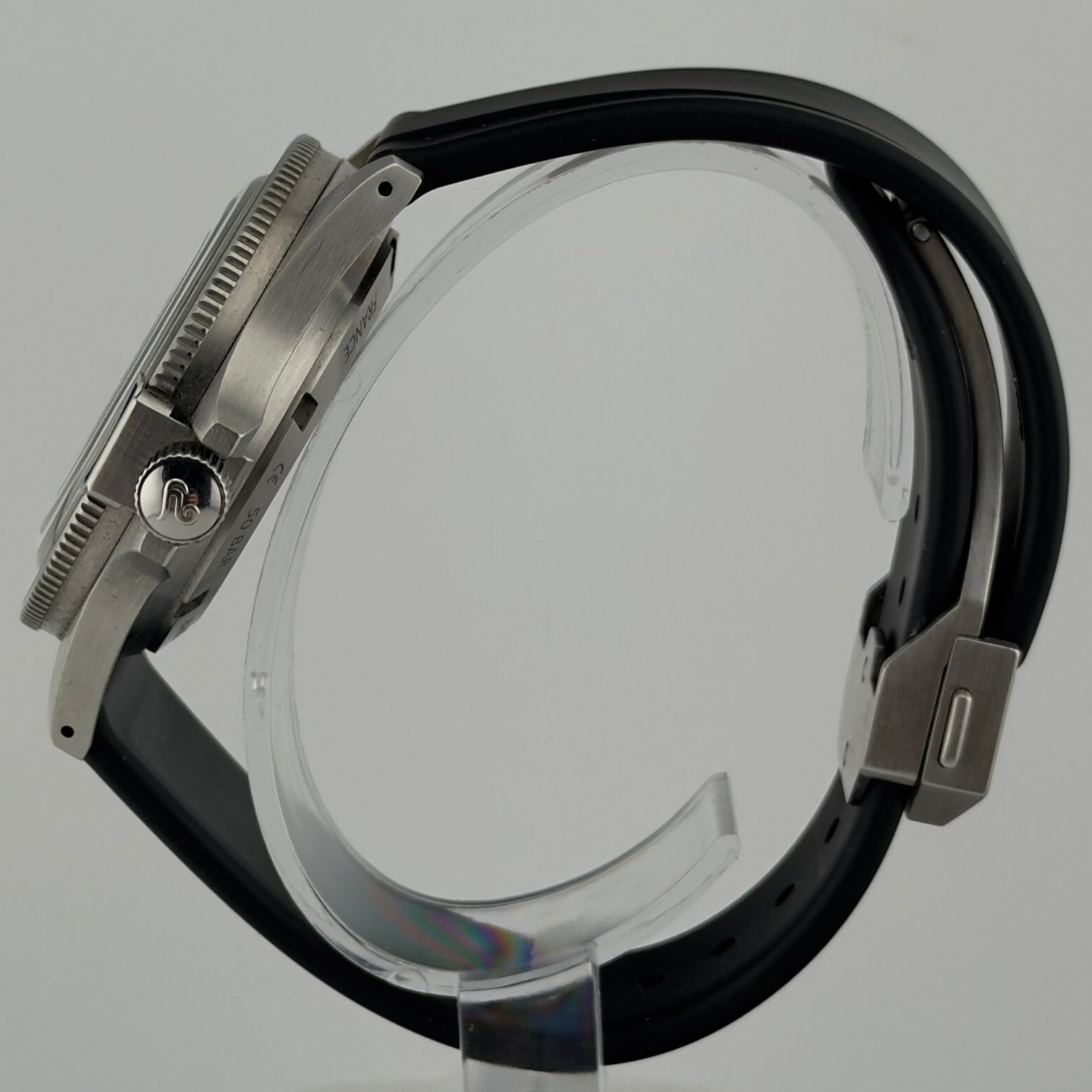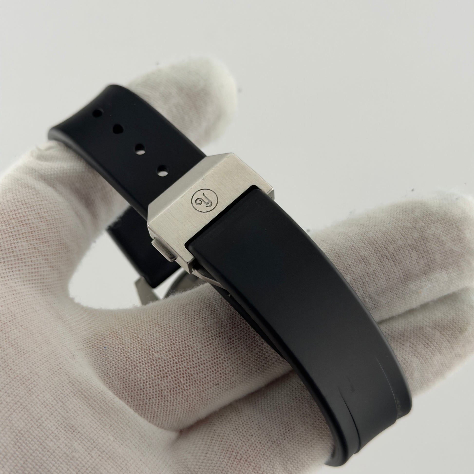 - Watch on original FKM rubber strap with deployant clasp